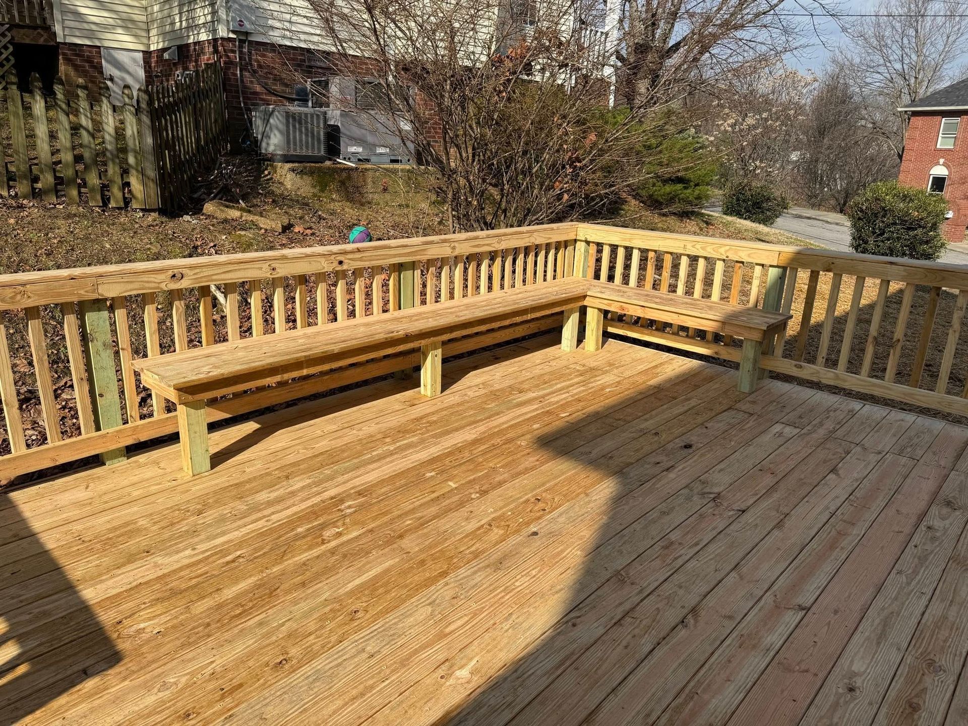 Railings are installed to code height and spacing, and all fasteners are rated for exterior exposure. This service does not include pergolas, built-in benches, or lighting, but it does provide a complete deck platform ready for furniture and regular use. The finished deck adds functional square footage to your home and increases property value in a way that buyers and appraisers both recognize.